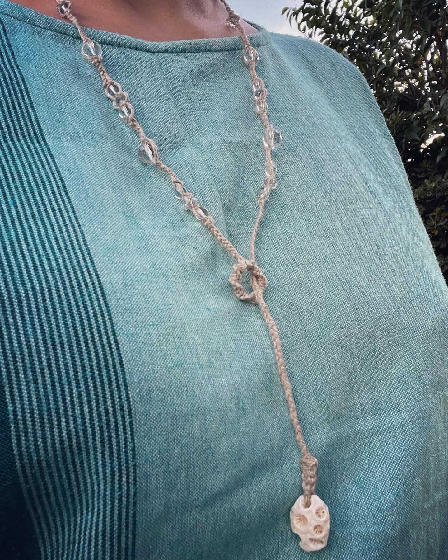 麻糸と水晶のシンプルなラリエット。