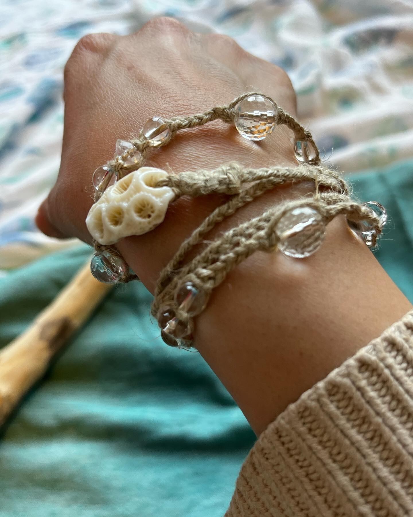 material 麻糸 水晶 菊目石珊瑚